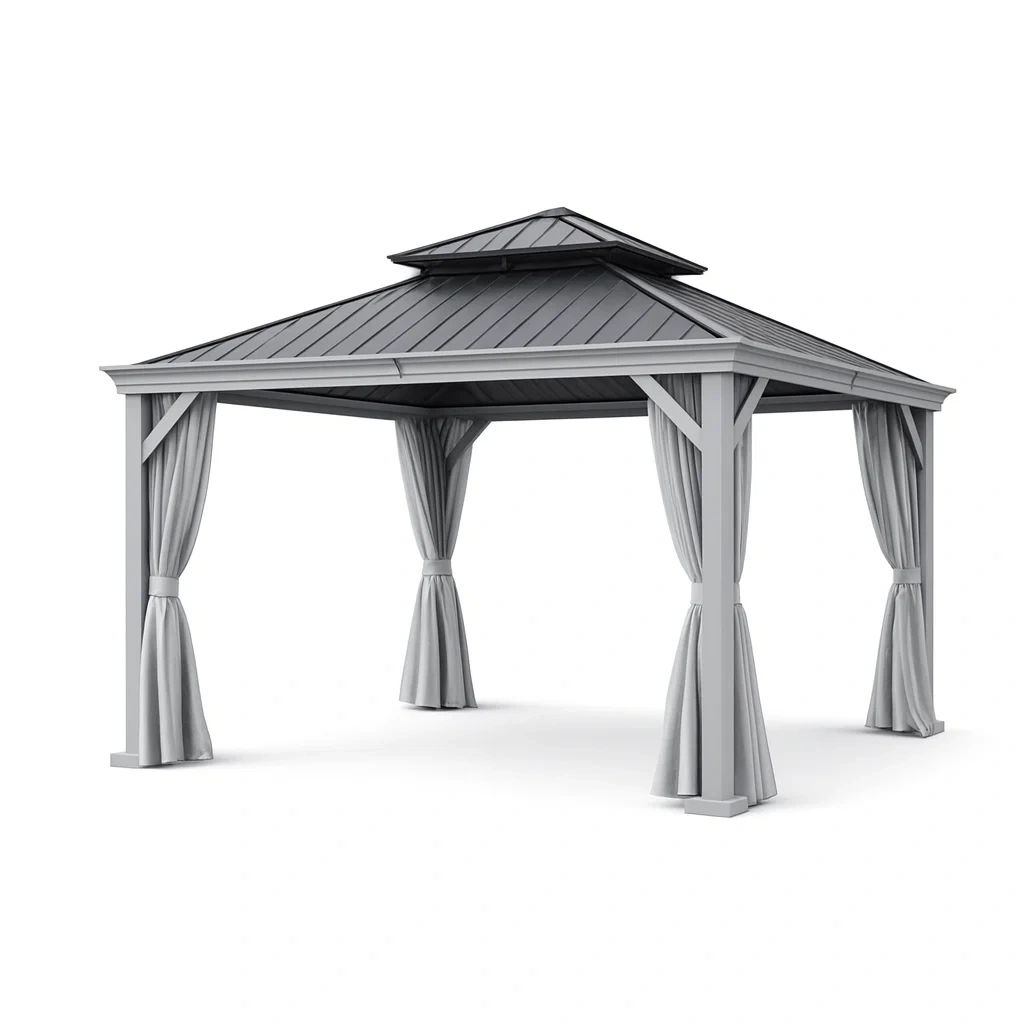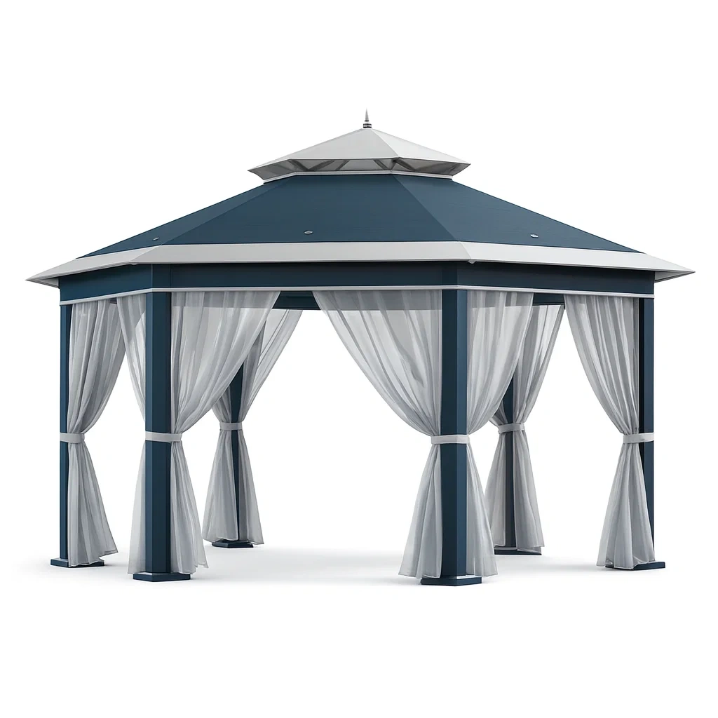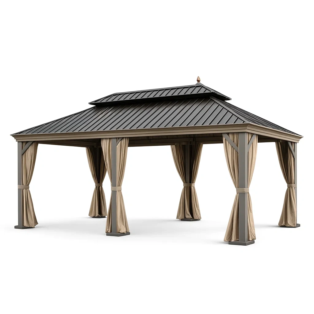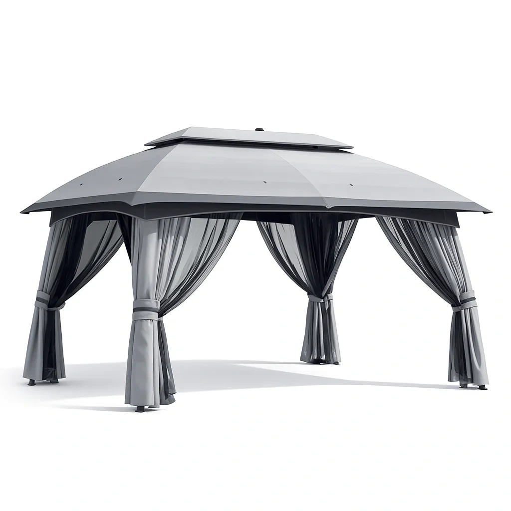 Pavillon aluminium stahl doppeltes dach mit vorhängen grau