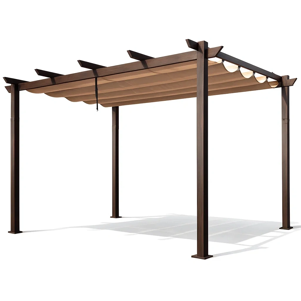 Pergola gartenpavillon aus aluminium mit polyester-sonnendach braun/beige